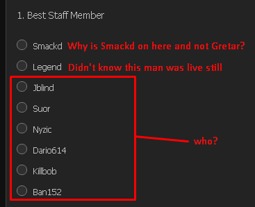 Jade Lens Posted July 23, 2017 Report Posted July 23, 2017 Who in your opinion is the best staff member, and who's the worst? I think the server lacks another mod and maybe need to get rid of two server supports and one or two new SS to take their place. Thoughts? Quote